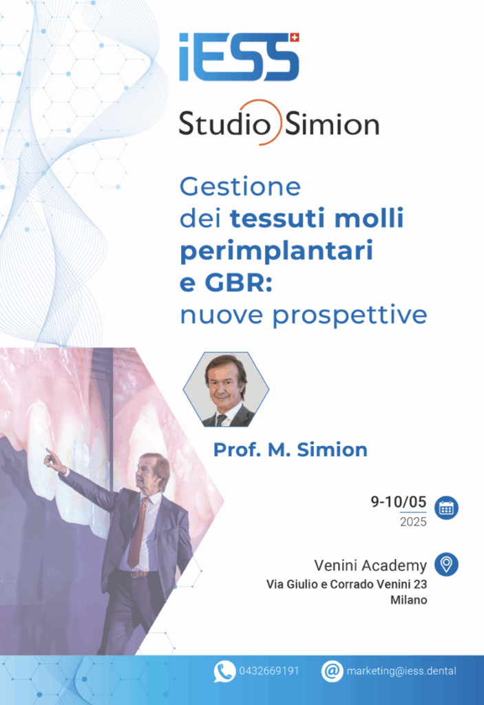 6-day full immersion course: advanced horizontal & vertical ridge augmentation – gbr, mesh and soft tissue management Milan | 2026 Language: English https://youtu.be/ROrVxY7REpc An intensive educational journey divided into two 3-day modules, designed for clinicians aiming to master the latest techniques in Guided Bone Regeneration, customized titanium meshes, and soft tissue management around implants. Includes theoretical lectures, live surgery, and hands-on sessions on anatomical modelsLimited availability: max 30 participantsComplimentary access to Prof. Simion’s advanced online video course on Osteocom For detailed program and registration, visit: VIEW THE PROGRAM MODULO 1 March 12–13–14, 2026 Focus on GBR with resorbable and non-resorbable membranes, customized titanium meshes, and management of fully edentulous cases and severe bone defects. MODULO 2 July 2–3–4, 2026 Dedicated to soft tissue management and bone augmentation in the esthetic zone, digital planning, and advanced case handling. REQUEST INFORMATION OR REGISTER NOW If you’d like more information about our training programs, participation details, or if you wish to register for one of the upcoming courses, our team is here for you. Fill out the form below and we’ll get back to you as soon as possible with all necessary information. To request participation, you can also contact us by phone Monday to Friday from 09:00 to 17:30. Simona Capocelli +39 02 66988259 info@studiosimion.it Instagram: massimosimion07